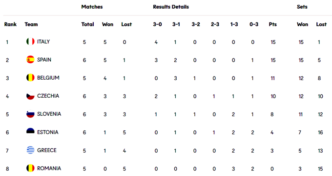 В групі 2 у Італії та Іспанії по 15 очок. Крім цих збірних, зберігає шанси вийти у плей-оф й команда Бельгії. Але для цього їй треба сьогодні ввечері та завтра перемогти обох лідерів.