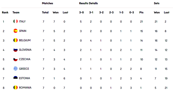 Таким чином, із групи 1 до півфіналу вийшли Франція та Польща, а з групи 2 – Італія та Іспанія. Півфінальні матчі відбудуться у суботу 20 липня.