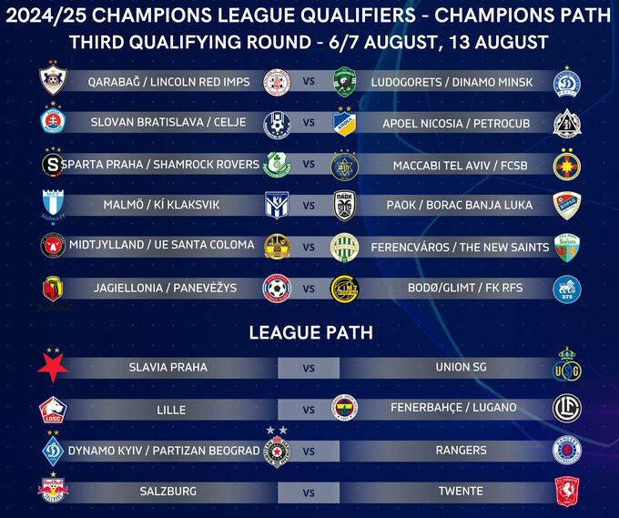 22 липня о 13:00 за київським часом у Будинку європейського футболу в швейцарському Ньоні прошло жеребкування третього раунду кваліфікації (Q3) Ліги чемпіонів 2024/25.