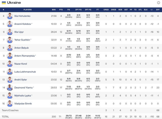Чехія – Україна – 93:71 (26:20, 16:22, 26:17, 25:12)