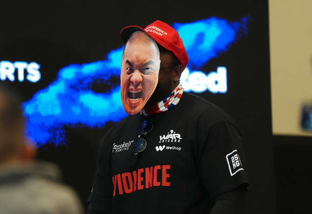 Боксер Дерек Чісора на зважування перед боєм проти Джо Джойса прийшов у масці з зображенням обличчя Чжана Чжілея.