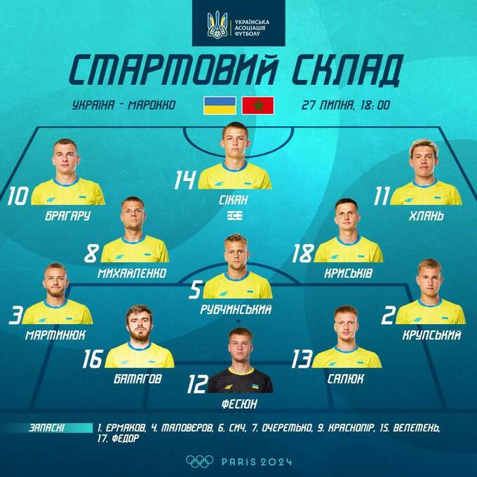 27 липня о 18:00 збірна України U-23 проводить другий матч на Олімпійських іграх 2024 – з командою Марокко U-23.