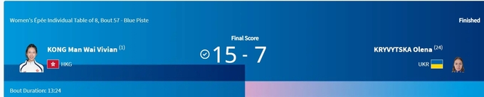 В іншому чвертьфінальному поєдинку українка Олена Кривицька поступилася представниці Гонконгу Вівіан Конг. Олена програла з рахунком 7:15.
