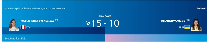 На Олімпіаді-2024 відбувся поєдинок 1/4 фіналу у фехтуванні на шпагах між українкою Владою Харьковою та француженкою Ауреан Малло-Бретон.