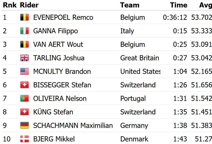Бельгійський велогонщик Ремко Евенпул завоював золото Олімпіади-2024 в індивідуальній гонці з роздільним стартом у чоловіків. Чинний чемпіон світу в цьому виді програми випередив 2-разового чемпіона світу в розділці, італійця Філіппо Ганну, і свого партнера по збірній Бельгії Воута Ван Арта.