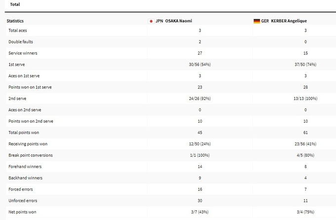 У стартовому матчі Анжелік Кербер з Німеччини в статусі андердога обіграла Наомі Осаку з Японії.