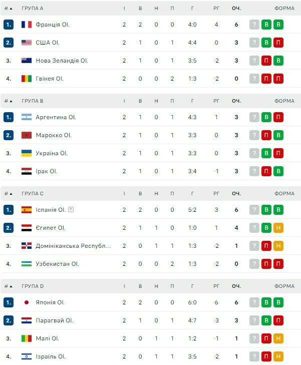 До 1/4 фіналу достроково пробилися збірні Іспанії та Японії, які виграли по два матчі.