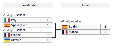 Раніше у півфіналі збірна Франція обіграла команду України з рахунком 1:0, а Іспанія в овертаймі вирвала перемогу в Італії (1:0 д.р.).