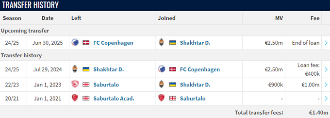 Прес-служба данського клубу підтвердила цю інформацію, опублікувавши фото Гіоргі у новій для нього формі. Повідомляється, що оренда розрахована до кінця сезону 2024/25. Данці залишають за собою право викупити контракт гравця.