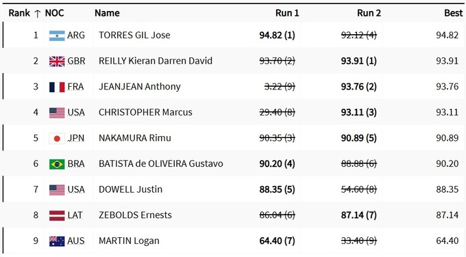 У чоловіків золото виборов аргентинець Хосе Торрес Хіль, який випередив Кірана Райллі та господаря змагань, француза Антоні Жанжана.