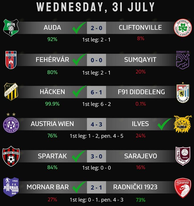 Інші матчі Q2 ЛК пройдуть 1 серпня, а поєдинки Q3 заплановані на 8 та 15 серпня.