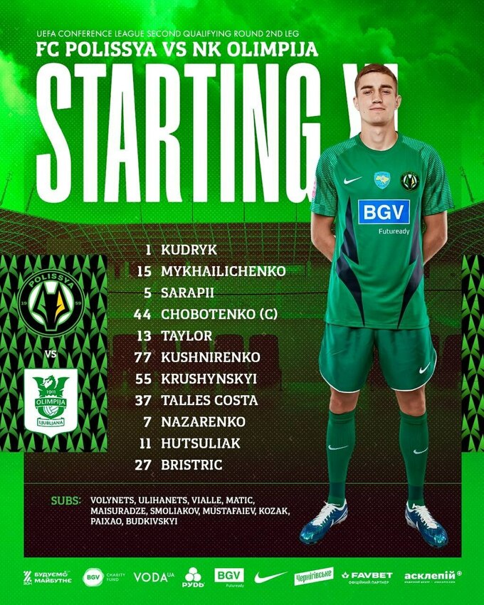 Сьогодні, 1 серпня «Полісся» в матчі-відповіді другого раунду кваліфікації Ліги конференцій в Глівіце зіграє проти «Олімпії» (Любляна, Словенія).
