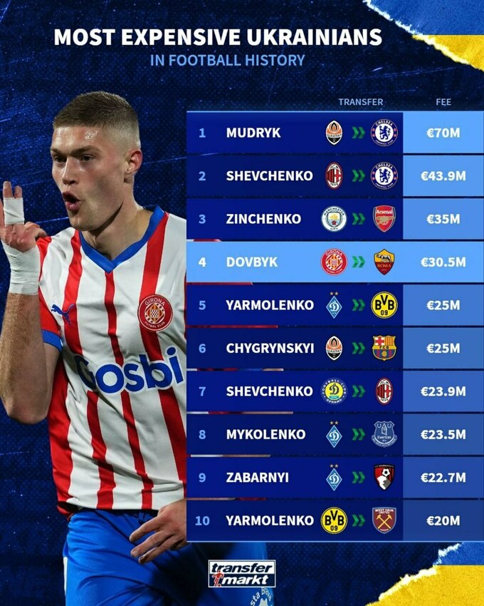 Трансфер Артема обійшовся римському клубу в 30.5 мільйонів євро без урахування бонусів. Це 4-й за чистою сумою трансфер в історії українських футболістів. Хто ж був вище?