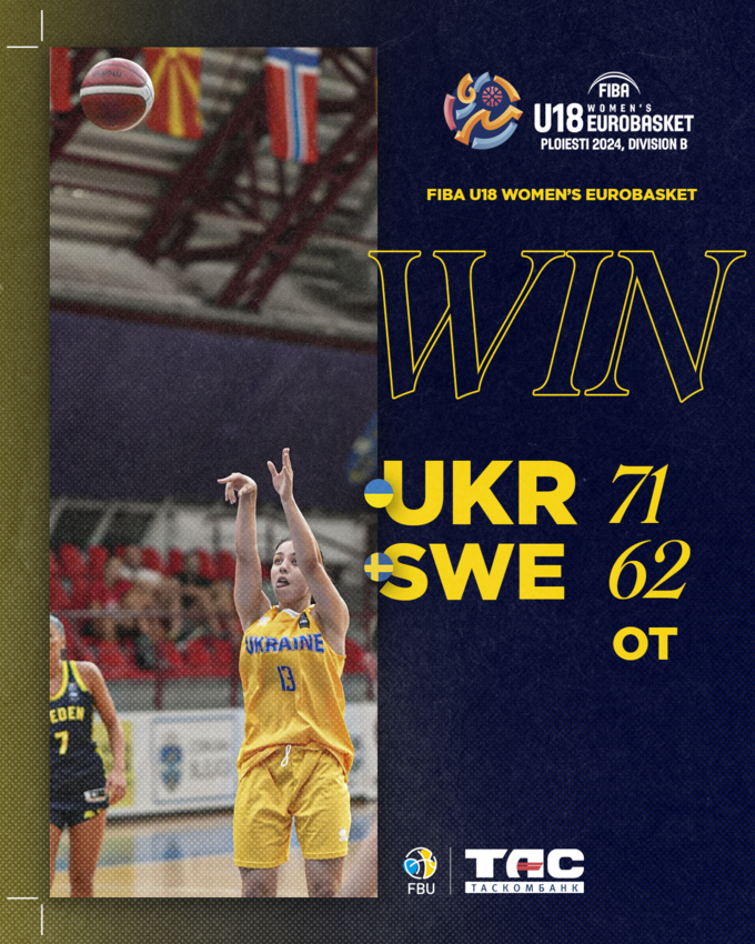 Жіноча збірна України U-18 з важкої перемоги над Швецією з рахунком 71:62 розпочала свої виступи на чемпіонаті Європи з баскетболу в Дивізіоні В у Плоєшті, Румунія.