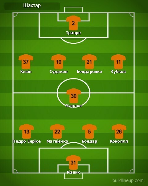 «Шахтар»: Різник, Матвієнко, Конопля, Бондар, Зубков (Педріньйо, 73), Педро Енріке, Бондаренко (Степаненко, 73), Марлон (Криськів, 64), Судаков, Кевін (Сікан, 73), Траоре (Егіналду, 64)