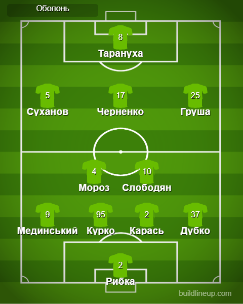 «Оболонь»: Рибка – Дубко, Карась (Лук'янчук, 18), Курко, Мединський – Мороз, Слободян – Груша (Приймак, 65), Черненко (Вітенчук, 72), Суханов – Тарануха (Лях, 72)