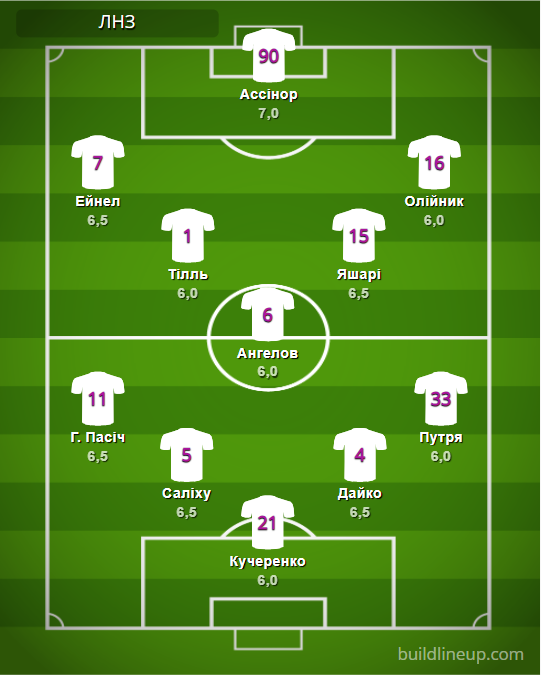 ЛНЗ: Кучеренко – Г. Пасіч, Саліху, Дайко, Путря – Тілль (Молло, 87), Ангелов (Бар, 70), Яшарі – Ейнел, Ассінор, Олійник (Наумець, 79).