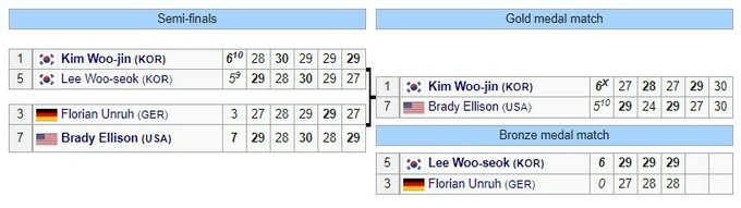 У матчі за третє місце інший південнокорейський лучник Йі У Сок виграв всуху у німця Флоріана Каллунда.