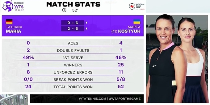 Марта Костюк (Україна) – Татьяна Марія (Німеччина) – 6:0, 6:2