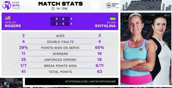 Шелбі Роджерс (США) – Еліна Світоліна (Україна) – 0:6, 2:6