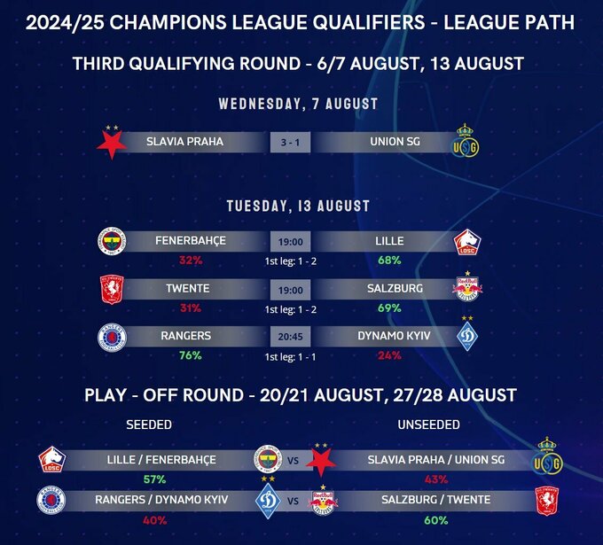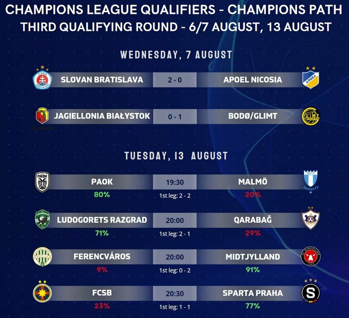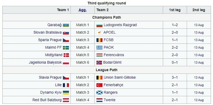 Поєдинки у відповідь Q3 Ліги чемпіонів заплановані на 13 серпня.
