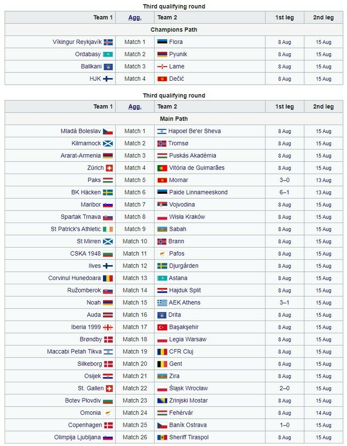 Перші матчі в парах, що залишилися, пройдуть 8 серпня, а поєдинки-відповіді Q3 Ліги конференцій заплановані на 15 серпня.