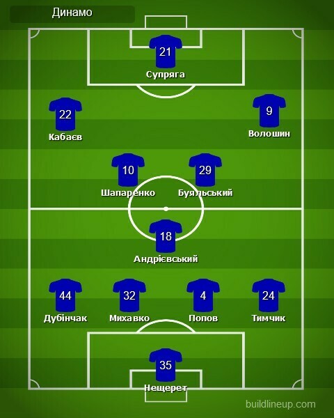 «Динамо»: Нещерет, Тимчик, Попов (Біловар, 68), Михавко, Дубінчак, Волошин, Шапаренко (Піхальонок, 46), Андрієвський, Кабаєв (Брагару, 46), Буяльський (Лонвейк, 90), Супряга (Пономаренко, 83)