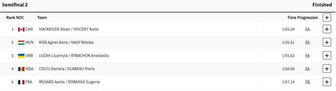 У своєму заїзді Лузан і Рибачок показали 3-й результат (1:55.62), і кваліфікувалися до фіналу A (туди потрапляли чотири найкращі команди).