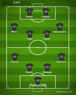 «Зоря»: Турбаєвський, Вантух (Жуніор, 87), Нваезе, Джордан, Тронтель, Мічін (Кораблін, 63), Яцик, Башич, Кирюханцев (Вакула, 63), Антюх (Беніто, 70), Герреро (Горбач, 70).
