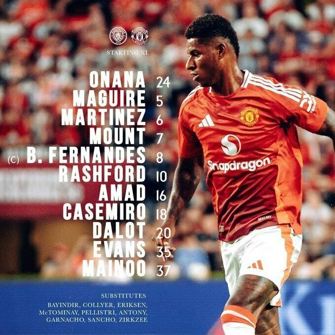 «Манчестер Юнайтед»: Онана, Дало, Еванс, Мартінес, Магуайр, Каземіро, Майну, Фернандеш, Маунт, Рашфорд, Діалло.