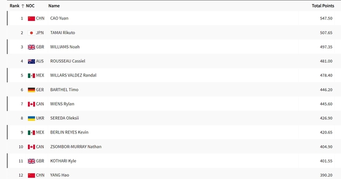 18-річний український спортсмен з результатом 426.90 балів після шести стрибків посів 8-ме місце.