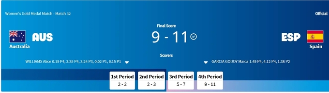 На Олімпіаді-2024 відбувся фінал у жіночому водному поло. Перемогу здобула команда Іспанії, яка обіграла Австралію з рахунком 11:9 та завоювала золото.