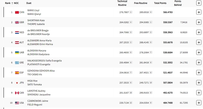 Український дует Марина Алексіїва – Владислава Алексіїва у технічній програмі показали 5-й результат, а у вільній – 7-й.
