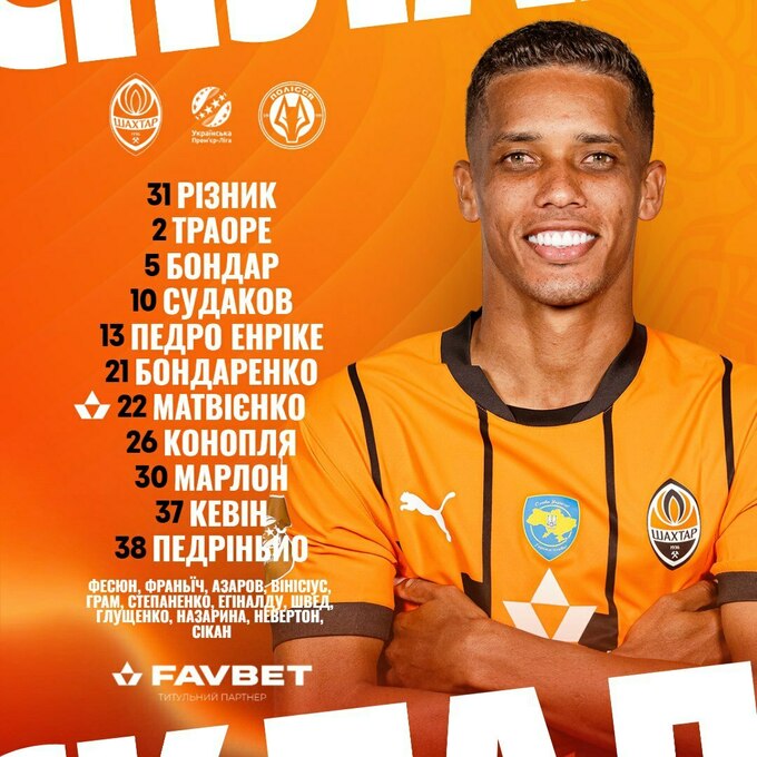 Запасні: Фесюн, Франьїч, Азарові, Вінісіус, Грам, Глущенко, Зубков, Назарина.