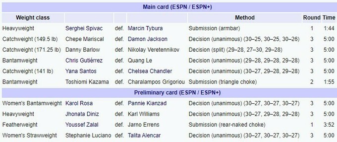 Результати UFC on ESPN 61