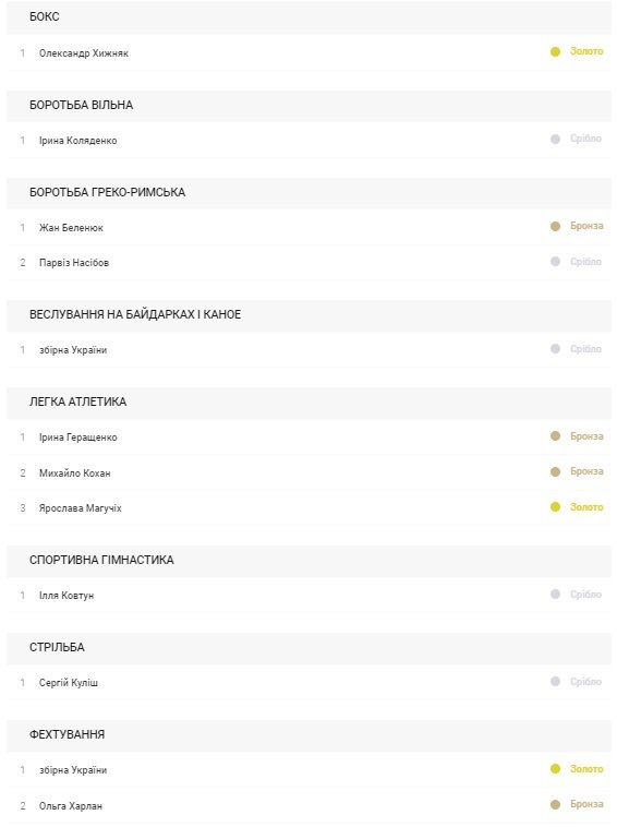 Українські спортсмени завоювали на одну нагороду більше, ніж у Ріо