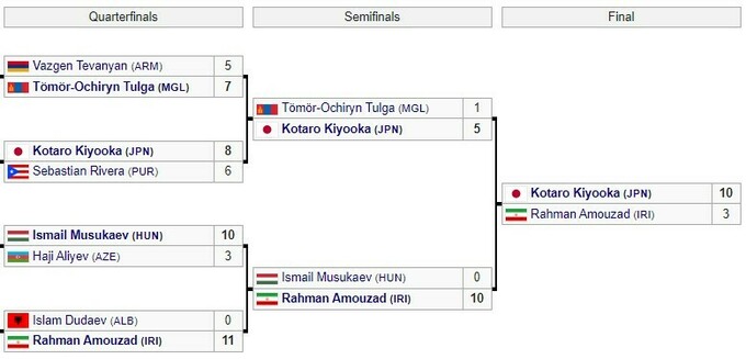 Японський борець вільного стилю Котаро Кійоока виграв фінальну сутичку в іранця Рамзана Амузадхалілі у ваговій категорії до 65 кг.