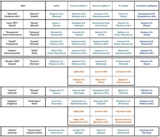Призначення суддів на матчі 2-го попереднього раунду Кубка України