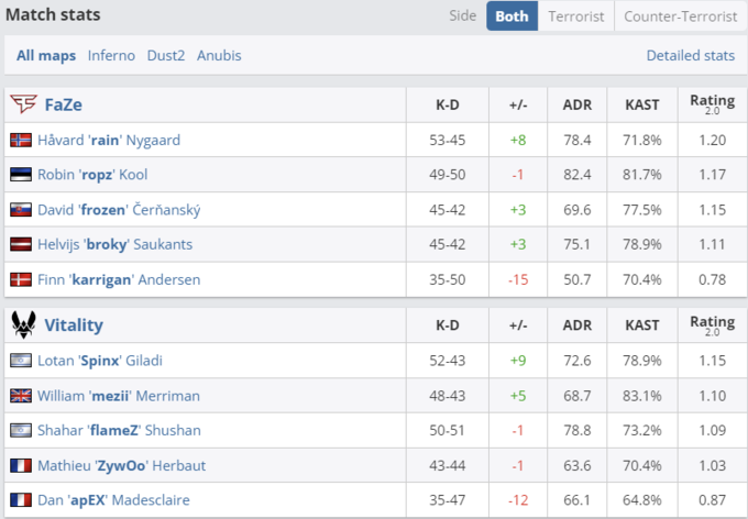 Десайдером матчу став Anubis. Перша частина була досить неоднозначною і завершилася з рахунком 6:6. А в другій половині піщаної карти Vitality вже не залишили супернику шансів і віддали лише 4 раунди, 2 з яких були пістолетною серією. У кінцевому підсумку рахунок останньої карти склав 13:8 на користь Vitality.