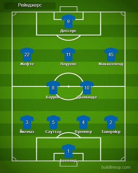 «Рейнджерс»: Батленд, Йилмаз (Девіс, 77), Сауттар, Преппер, Тавернієр, Баррон, Дьоманде (Д.Стерлінг, 68), Жефте, Лоуренс (Матондо, 85), Маккозленд (Черни, 46), Дессерс