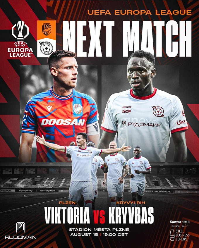У поєдинку у місті Пльзень на «Дусан Арені» зіграють чеська команда «Вікторія» та «Кривбас» Кривий Ріг.