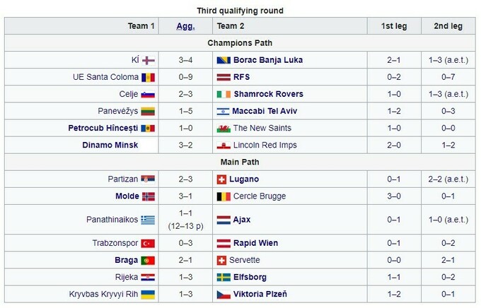 За їх підсумками визначено пари 4-го раунду кваліфікації Ліги Європи.