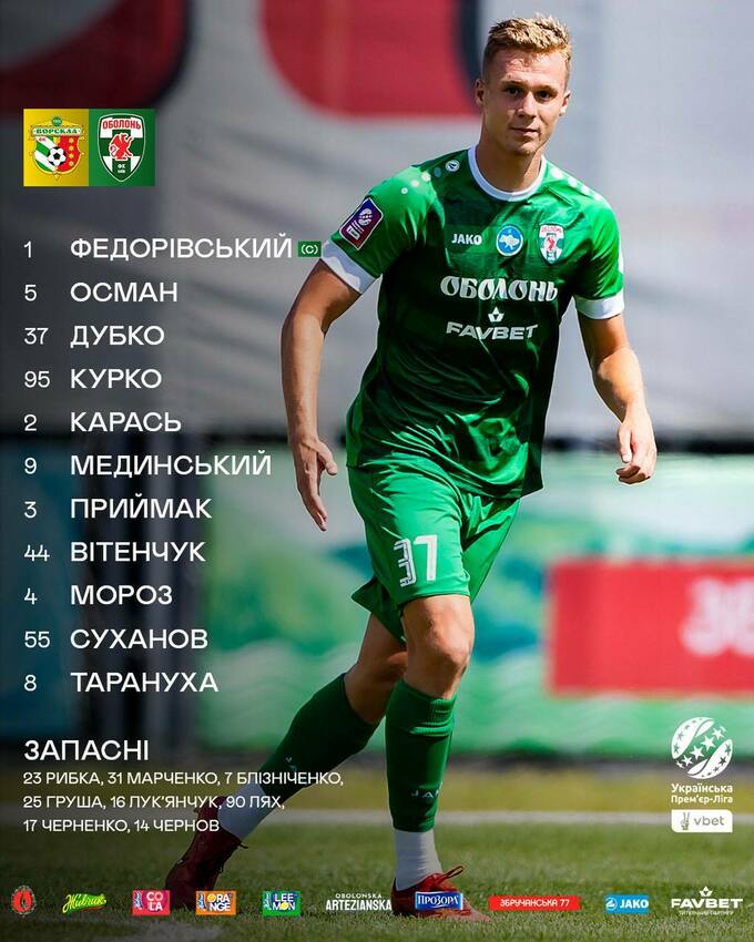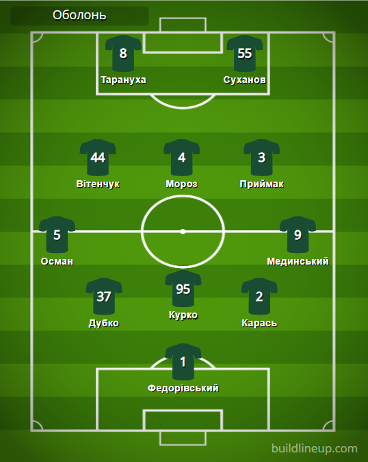 «Оболонь»: Федорівський – Осман (Груша, 86), Дубко, Курко, Карась, Мединський – Вітенчук (Черненко, 64), Мороз, Приймак – Тарануха (Блізніченко, 72), Суханов.