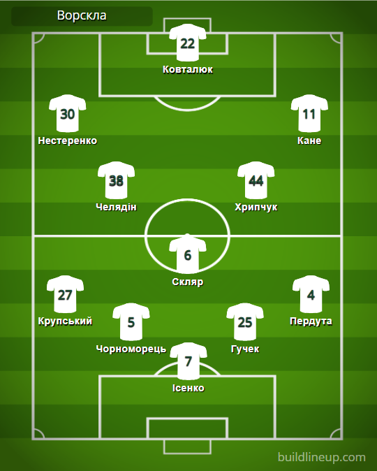 «Ворскла»: Ісенко – Крупський, Чорноморець, Гучек, Пердута – Челядін (Корнієнко, 66), Скляр (Бацула, 46), Хрипчук – Нестеренко (Островський, 81), Ковталюк (Ієде, 66), Кане (Мякушко, 88).