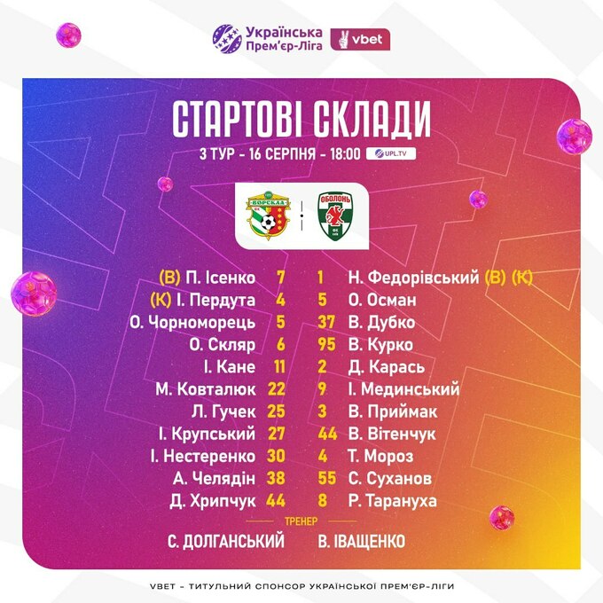 У п'ятницю, 16-го серпня, відбудеться поєдинок 3-го туру Української Прем'єр-ліги, у якому змагатимуться полтавська «Ворскла» і київська «Оболонь». Матч відбудеться в Полтаві, на полі стадіону «Ворскла» ім. О. Бутовського, початок о 18:00.