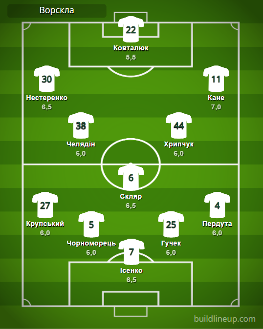 «Ворскла» (заміни): Бацула – 6,0, Ієде – 6,0, Корнієнко – 6,0, Островський – б/о, Мякушко – б/о.