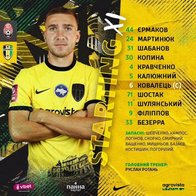 Запасні: Сапутін, Мацапура, Ескінья, Гусєв, Хахльов, Слесар, Беніто.