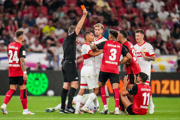 І Штутгарт міг перемогти в основний час завдяки голам Мійо та Ундава. А ось Баєр забив першим, але з 37-ї хвилини зустрічі грав у меншості після прямої червоної картки Мартіна Терр'є.