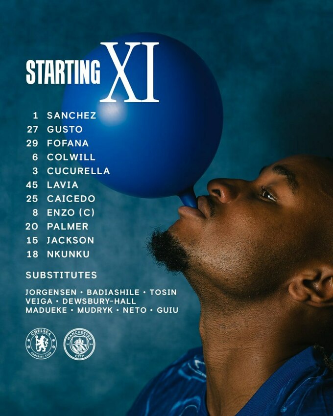 «Челсі»: Санчес, Кукурелья, Колуїлл, Фофана, Гюсто, Фернандес, Кайседо, Лавія, Палмер, Нкунку, Джексон