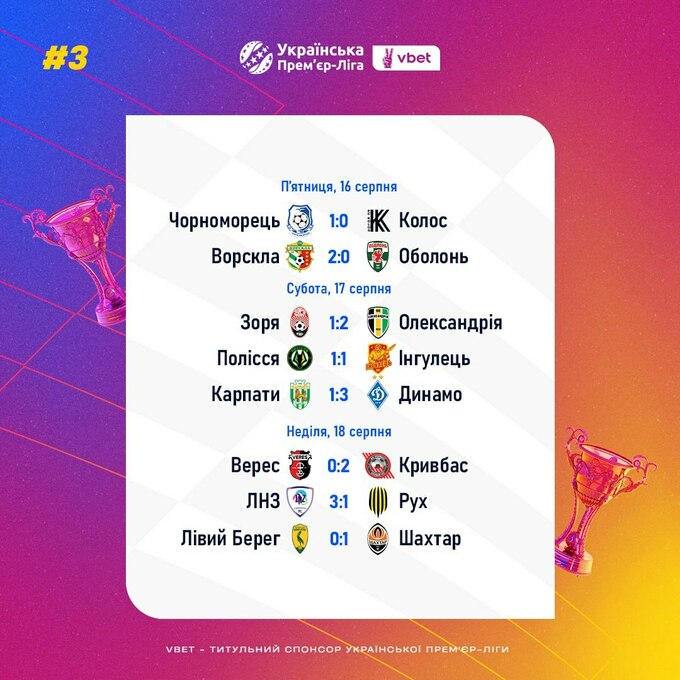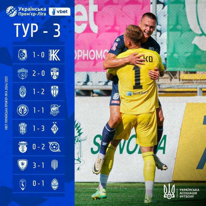 З 16 до 18 серпня відбулися матчі 3-го туру Української Прем'єр-ліги 2024/25.